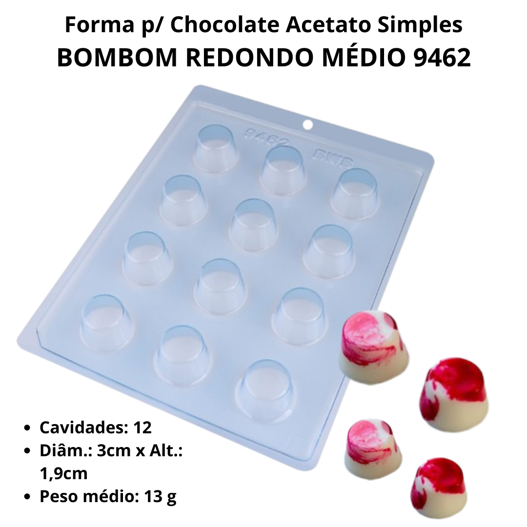 Forma para Chocolate Bombom Redondo Médio 9462 Acetato Simples - BWB