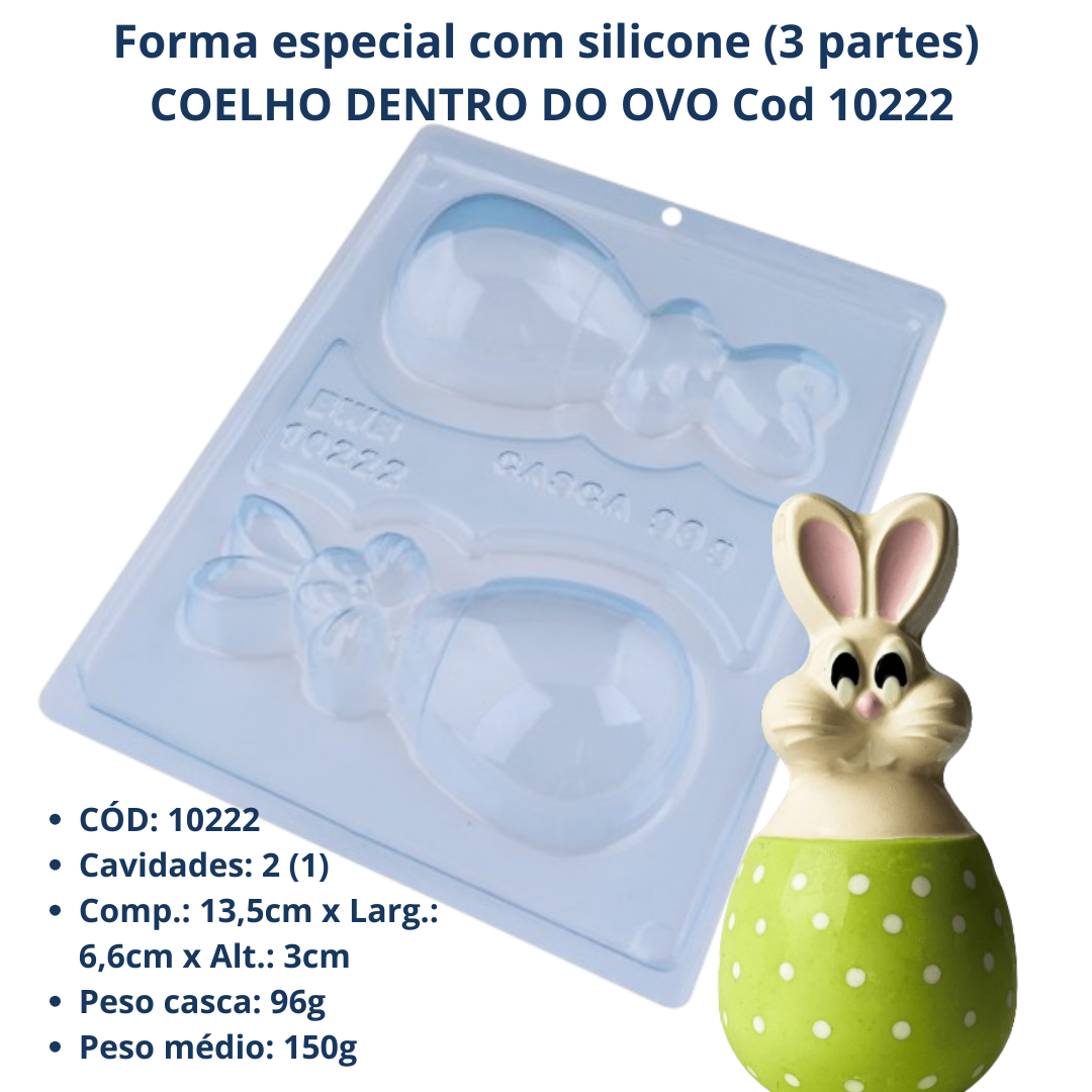 BWB Forma para chocolate Coelho dentro do Ovo cod 10222 (3 Partes "01 silicone")
