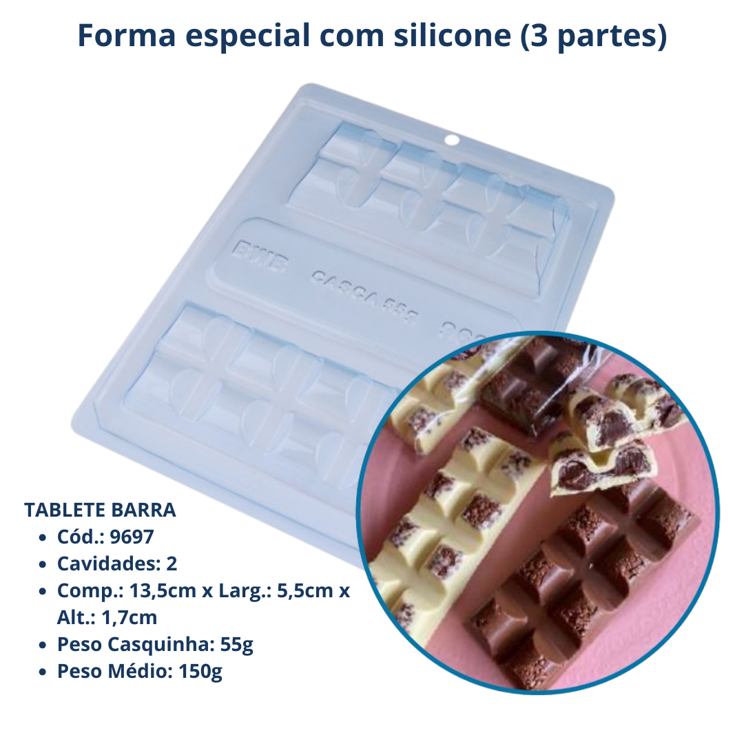 Forma para chocolate Tablete Barra 55g BWB Embalagens cod 9697