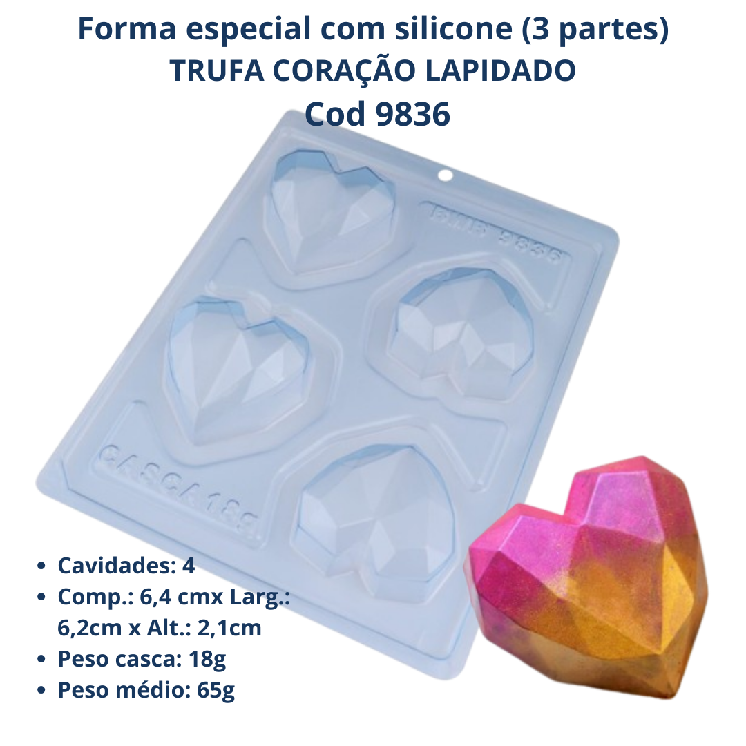 Forma para Chocolate Trufa Coração Lapidado 18g BWB Embalagens cod 9836