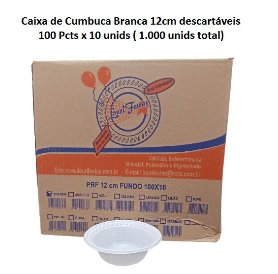 Caixa Cumbuca Branca 12cm c/ 100x10 (1.000 unids) descartável - Louri Festas