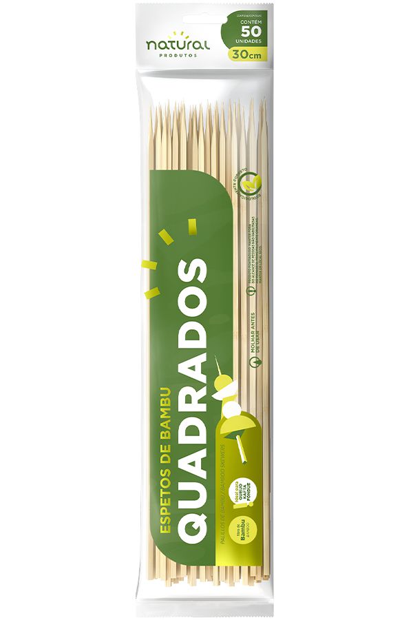 Espeto Bambu Quadrado 30cm c/ 50 unids (Kafta) - Natural Produtos