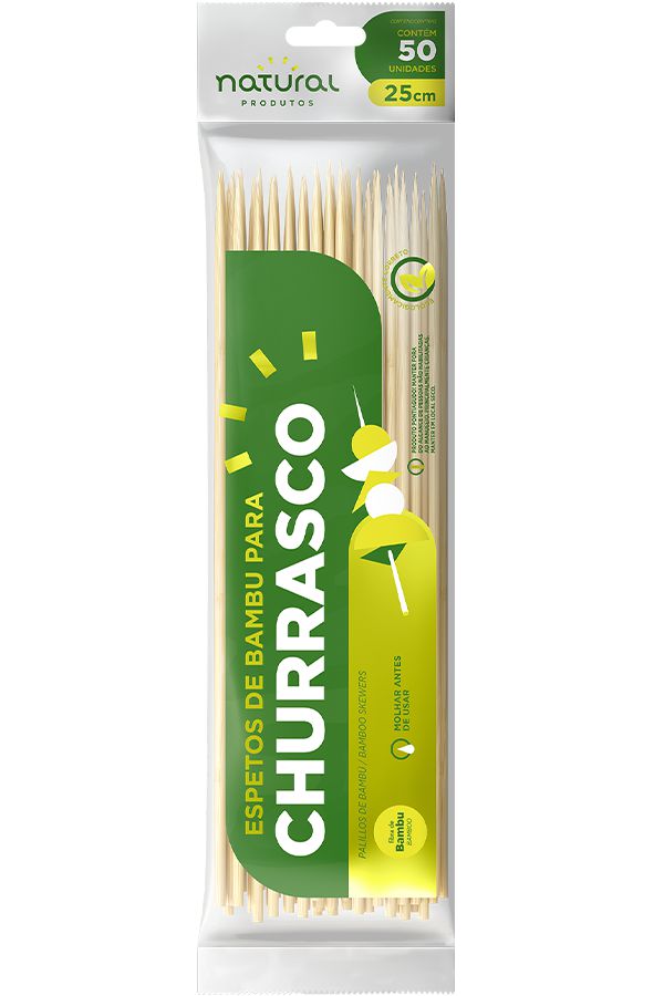 Espeto de Bambu para Churrasco 25 cm c/ 50 unids - Natural Produtos