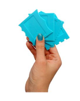 O kit com mini raspadores, com dois efeitos diferentes de cada lado, super prática, você consegue fazer 8 desenhos para decorar bolos.