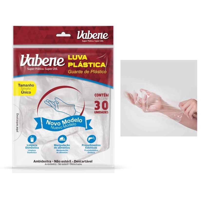LUVA PLÁSTICA 30 UNID TAM ÚNICO - VABENE