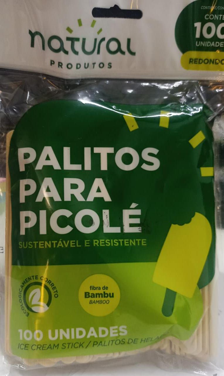 Palito para Sorvete Ponta Redonda ( Fibra de Bambu) c/ 100 unids - Natural Produtos
