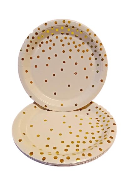 Prato de Papel com bolinha dourada, um charme para a sua festa.